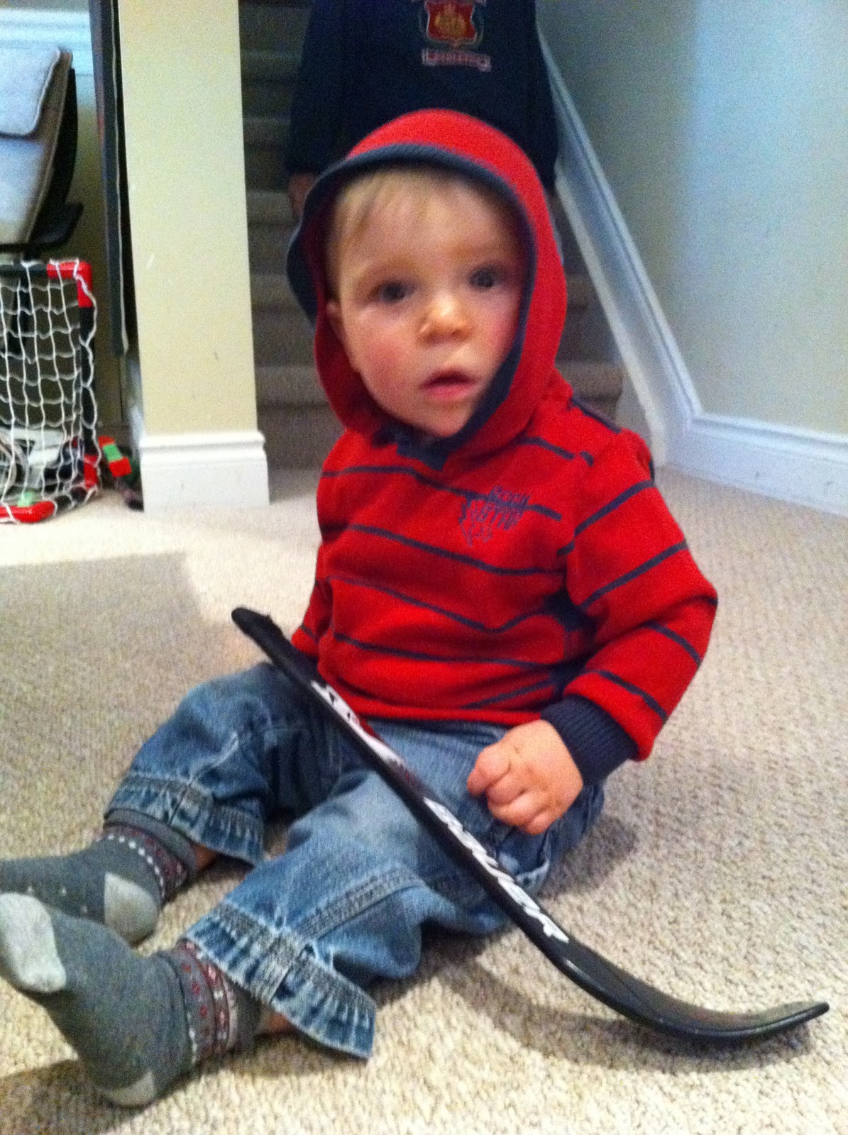My baby brother might play hockey one day but he is too little now!