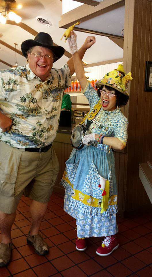 Tim with the chicken lady 2016; fat Tim