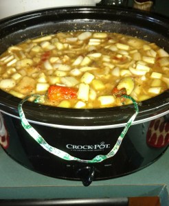 Let all the above cook on high for three to three and a half hours in the Crock-Pot.
