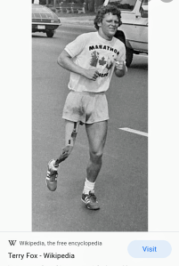 I was reading yesterday about Terry Fox. A young man who died when he was 23 years old, in 1981. Cancer caused him to lose one of his legs and it was replaced with a prosthetic leg. But instead of feeling sorry for himself and giving up. He embarked on a cross Canadian Marathon run, with a prosthetic leg. Just for the purposes of raising awareness to cancer.
