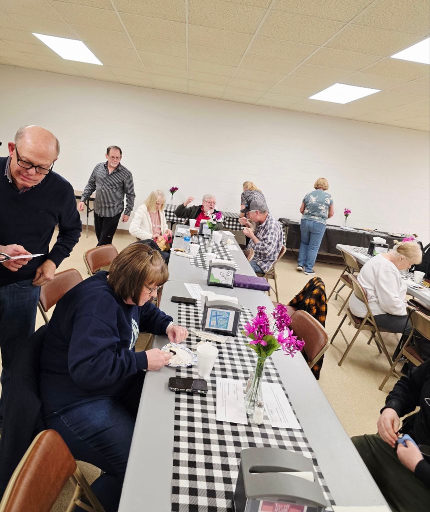And so on Wednesday nights at Sawyersville Wesleyan church, We Gather. We invite new people to communion. We teach communion with the Lord and of the Saints. And we go on to study the Bible and discipleship principles. Koinonia love is present and growing. It is a deep time of worship, Fellowship and joy in Jesus!